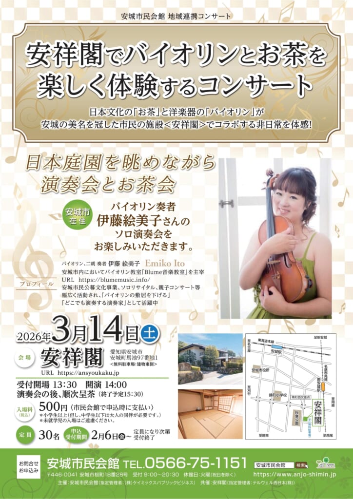 安祥閣でバイオリンとお茶を楽しく体験するコンサート